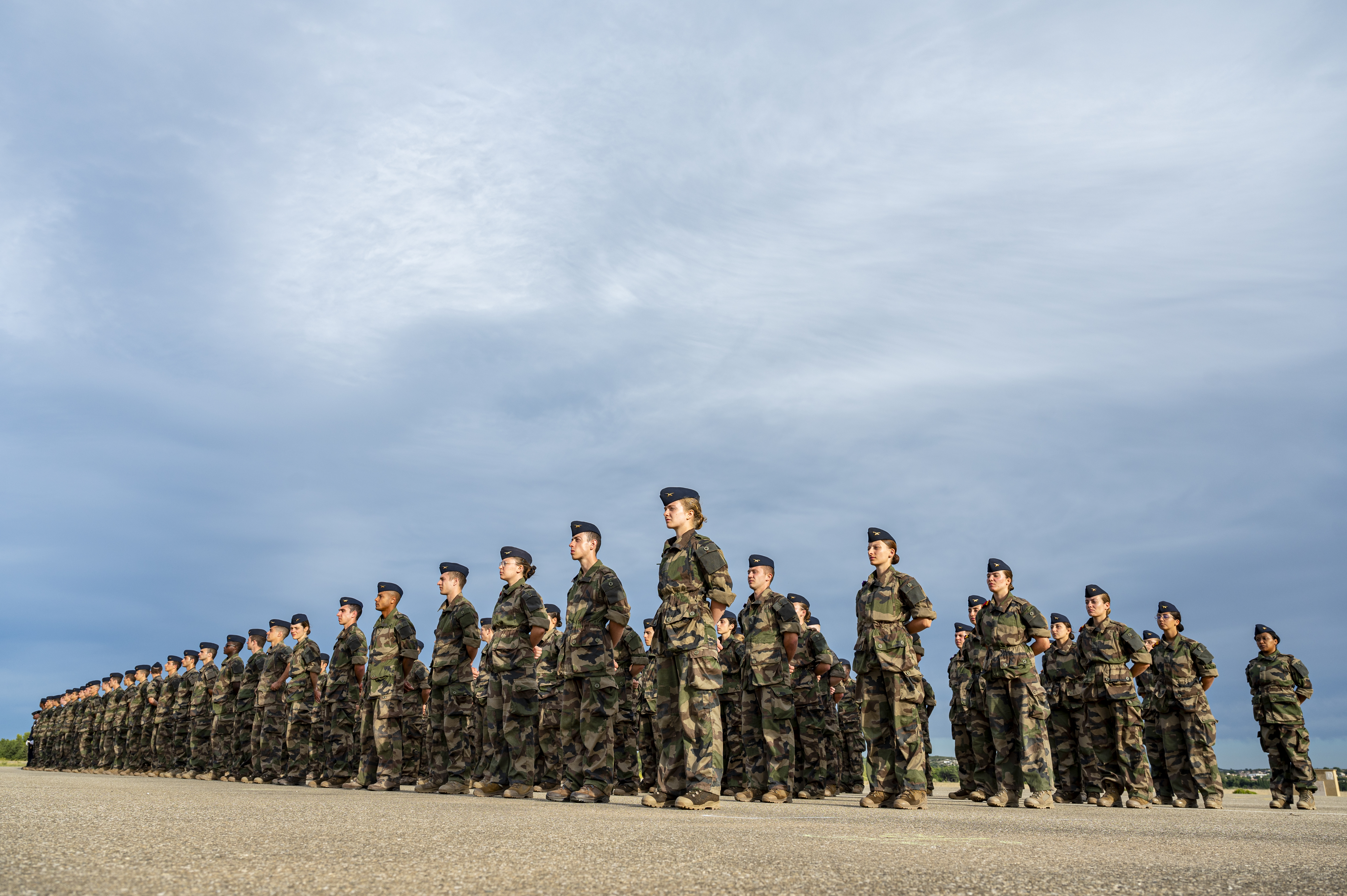 Explication : Le 12 septembre 2024 sur la base aérienne 701 de Salon-de-Provence, les élèves de la promotion 2024 ont effectué le baptême dans le vent des hélices où leur sont remis leurs grades d'aspirants.