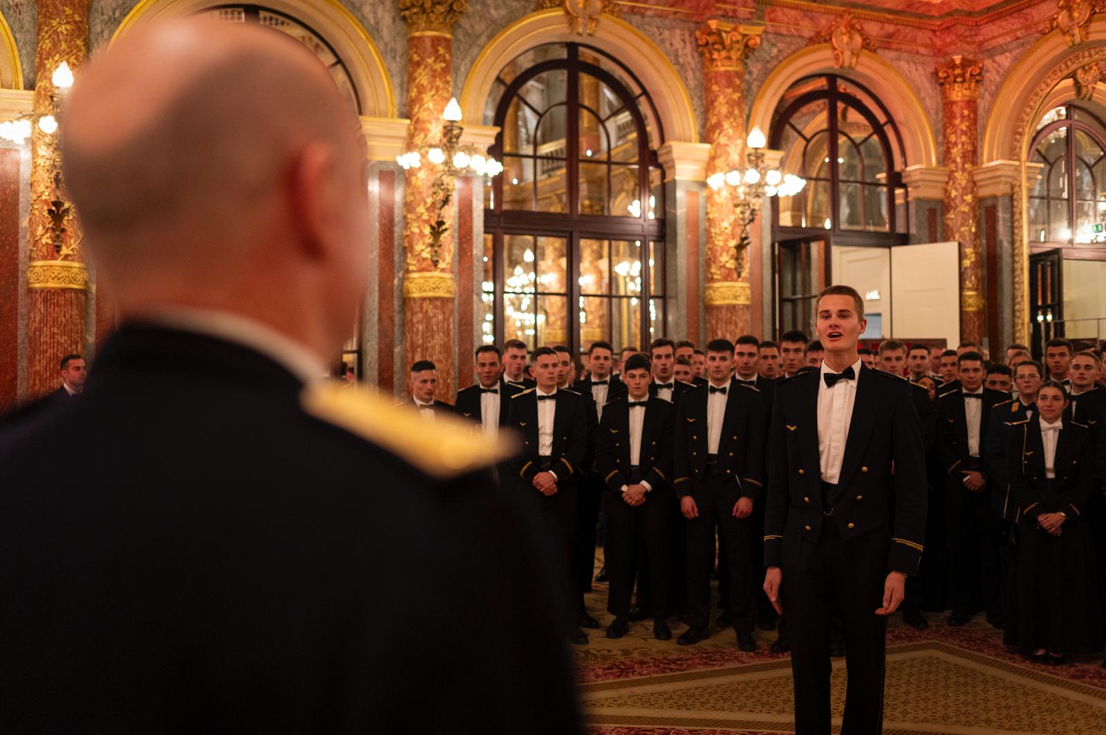 Explication : Organisée par les élèves-officiers de la promotion Jean Moulin, la Nuit des aiglons a permis aux nouveaux officiers de vivre leur premier grand bal dans un cadre d'exception. Cette tradition, solidement ancrée dans la vie de l'École de l'air et de l'espace, offre l’opportunité aux élèves-officiers de partager un moment privilégié avec leurs aînés et leurs camarades. Fidèle à ses valeurs de générosité et de soutien, le bal a consacré une partie des fonds récoltés à l’association Les Ailes Brisées, qui vient en aide aux aviateurs blessés et à leurs familles. Cette édition revêtait une dimension toute particulière, célébrant les 90 ans de l'institution tout en honorant la mémoire et les valeurs de Jean Moulin, parrain de la promotion 2023.
