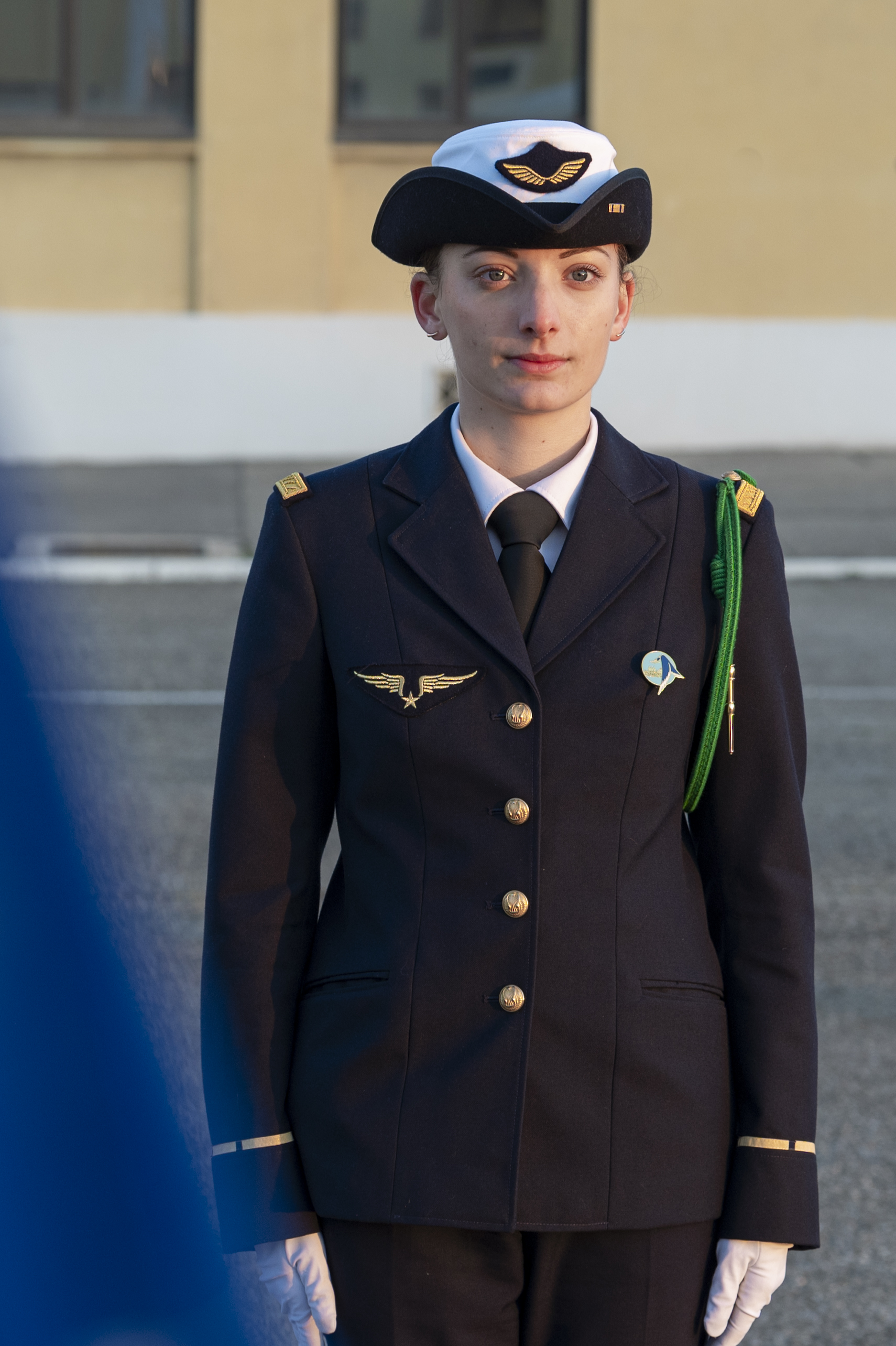 Explication : La cérémonie des couleurs est un rituel mensuel au sein de l'Armée de l'Air et de l'Espace, auquel participent systématiquement le personnel de l'école et de la base aérienne. Au fil des années, les différentes promotions d'élèves-officiers ont relevé ce défi qui exige rigueur et précision. C'est un moment solennel où ils rendent hommage à ceux qui sont tombés pour la patrie, à ceux qui ont servi avec courage et dévouement, et à ceux qui, aujourd'hui encore, portent fièrement nos couleurs. Le drapeau, flottant dans le ciel salonais, symbolise le lien qui unit ces futurs officiers à leurs prédécesseurs. L'étendard français est aussi un emblème vivant de la cohésion et de l'engagement des Aviateurs à défendre la nation.