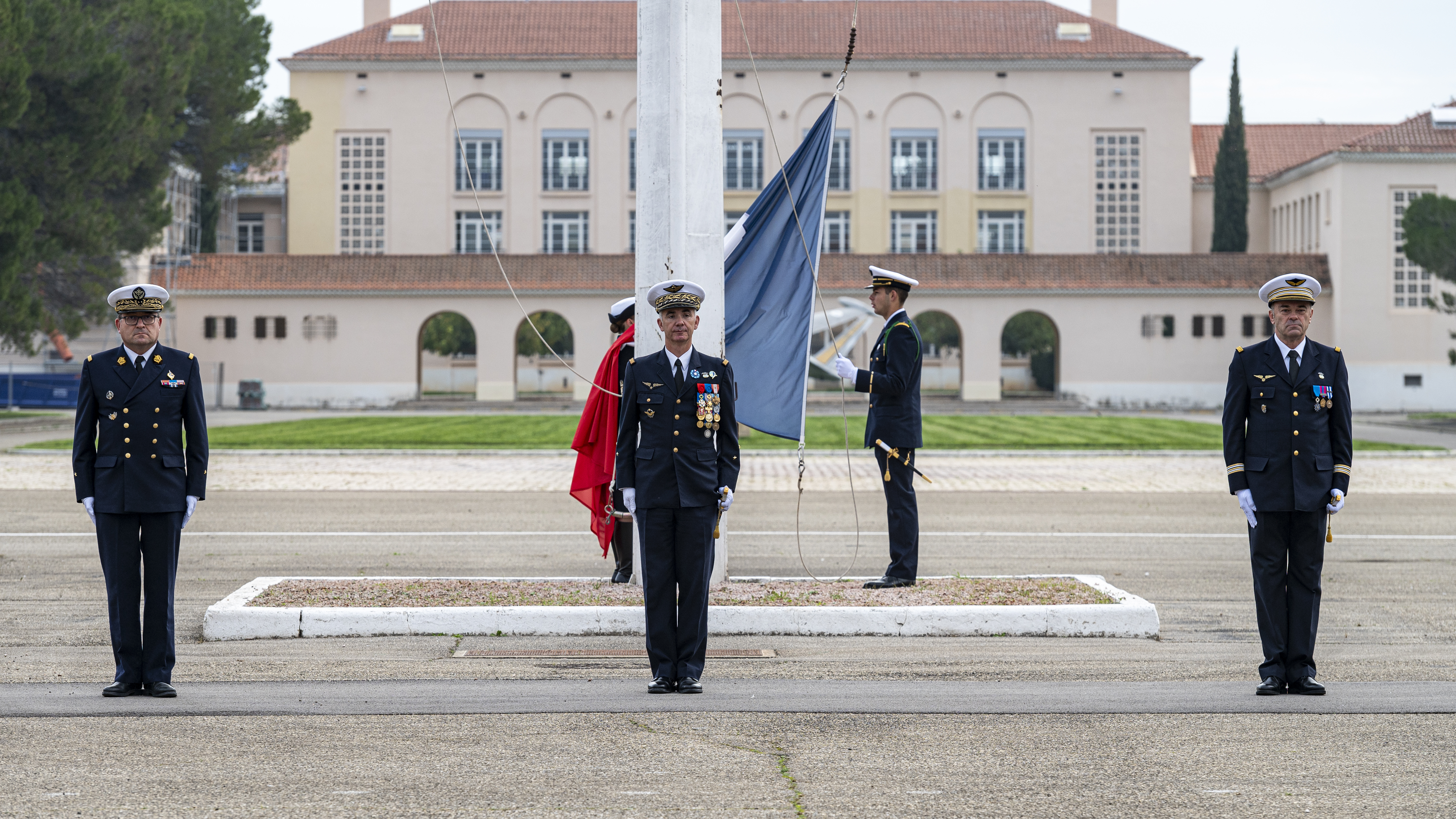Explication : La cérémonie des couleurs est un rendez-vous immanquable pour tout militaire. Elle est l’occasion pour le personnel de la base aérienne 701 et celui de l’École de l’air et de l’espace de se retrouver pour rendre les honneurs au drapeau. C’est aussi un moment solennel qui rappelle à l’ensemble des aviateurs les valeurs qui guident leur engagement. Elle est l’occasion pour le personnel de la base aérienne 701 et celui de l’École de l’air et de l’espace de se retrouver pour rendre les honneurs au drapeau. C’est aussi un moment solennel qui rappelle à l’ensemble des aviateurs les valeurs qui guident leur engagement.