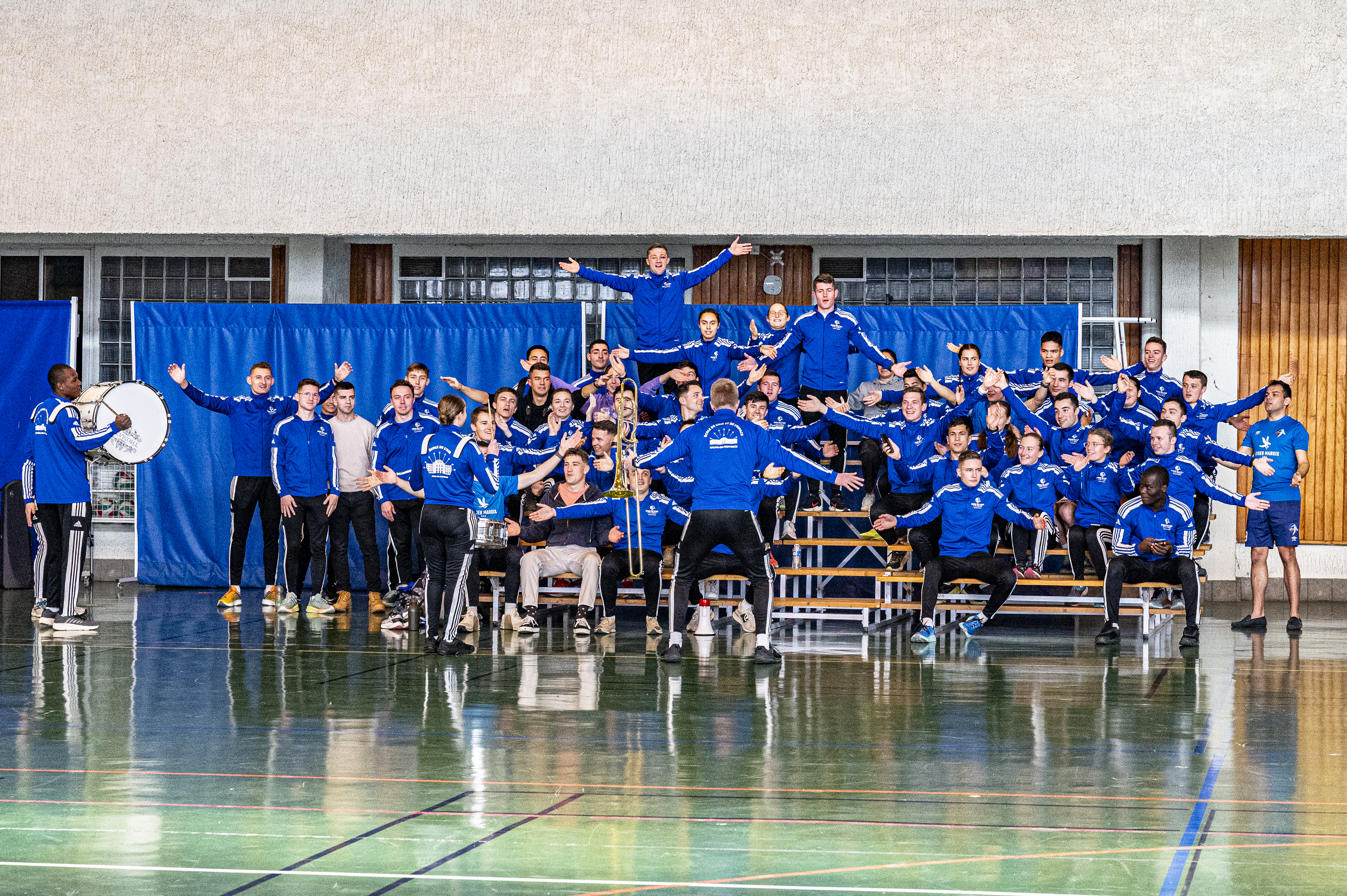 Explication : À l'occasion d'une rencontre sportive contre le Royal Air Force de Cranwell, et comme à chaque compétition, nos élèves-officiers encouragent avec détermination leurs camarades.