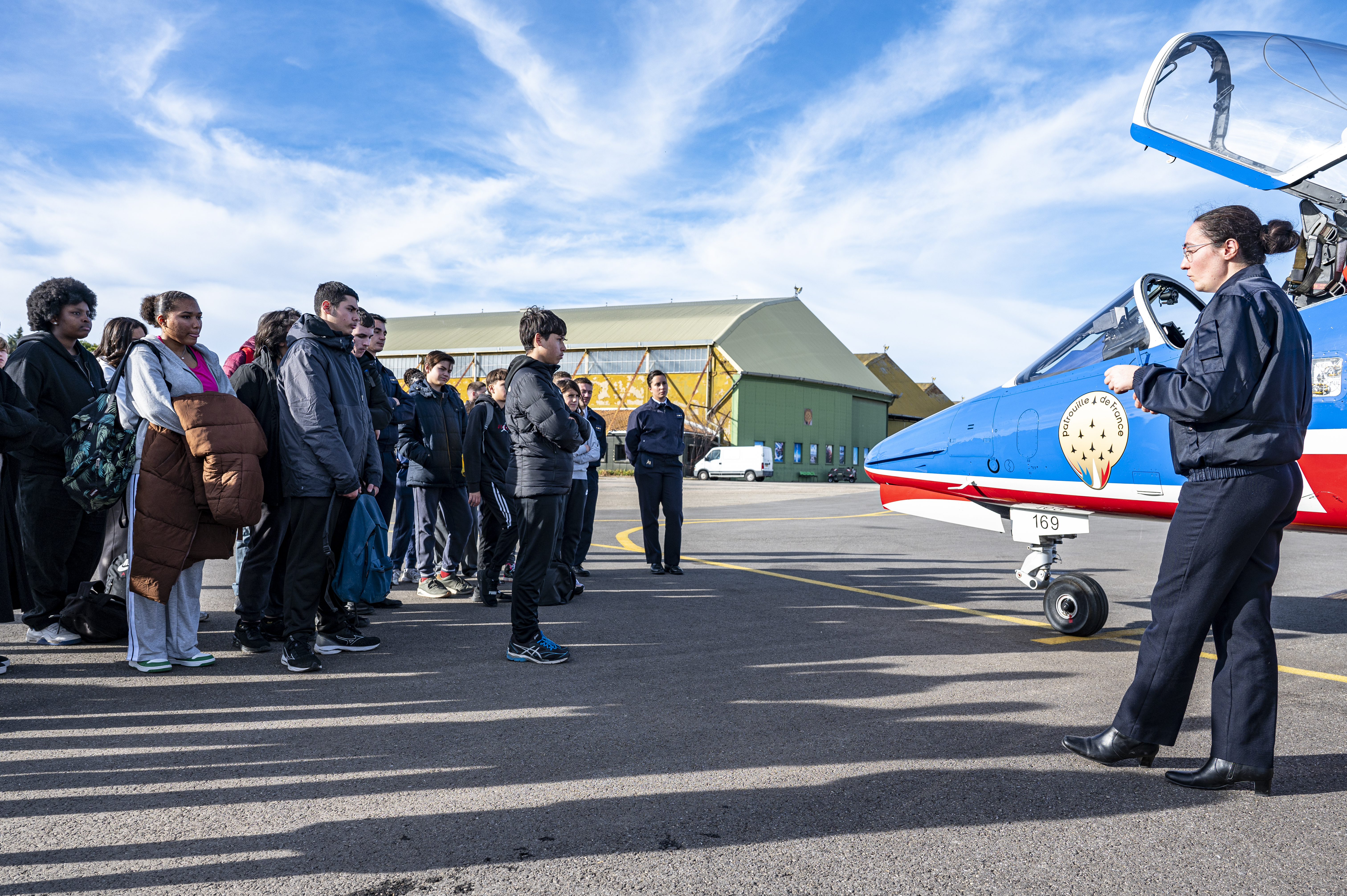 Explication : L’École de l’air et de l’espace poursuit son engagement pour l’égalité des chances avec le programme « Air Réussite Jeunesse », accompagnant 95 collégiens et lycéens grâce à des tuteurs élèves-officiers et des activités enrichissantes, et visites d'unités.