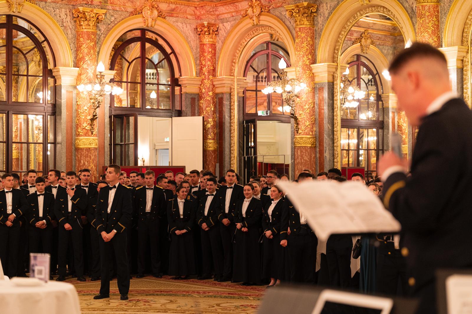 Explication : Organisée par les élèves-officiers de la promotion Jean Moulin, la Nuit des aiglons a permis aux nouveaux officiers de vivre leur premier grand bal dans un cadre d'exception. Cette tradition, solidement ancrée dans la vie de l'École de l'air et de l'espace, offre l’opportunité aux élèves-officiers de partager un moment privilégié avec leurs aînés et leurs camarades. Fidèle à ses valeurs de générosité et de soutien, le bal a consacré une partie des fonds récoltés à l’association Les Ailes Brisées, qui vient en aide aux aviateurs blessés et à leurs familles. Cette édition revêtait une dimension toute particulière, célébrant les 90 ans de l'institution tout en honorant la mémoire et les valeurs de Jean Moulin, parrain de la promotion 2023.