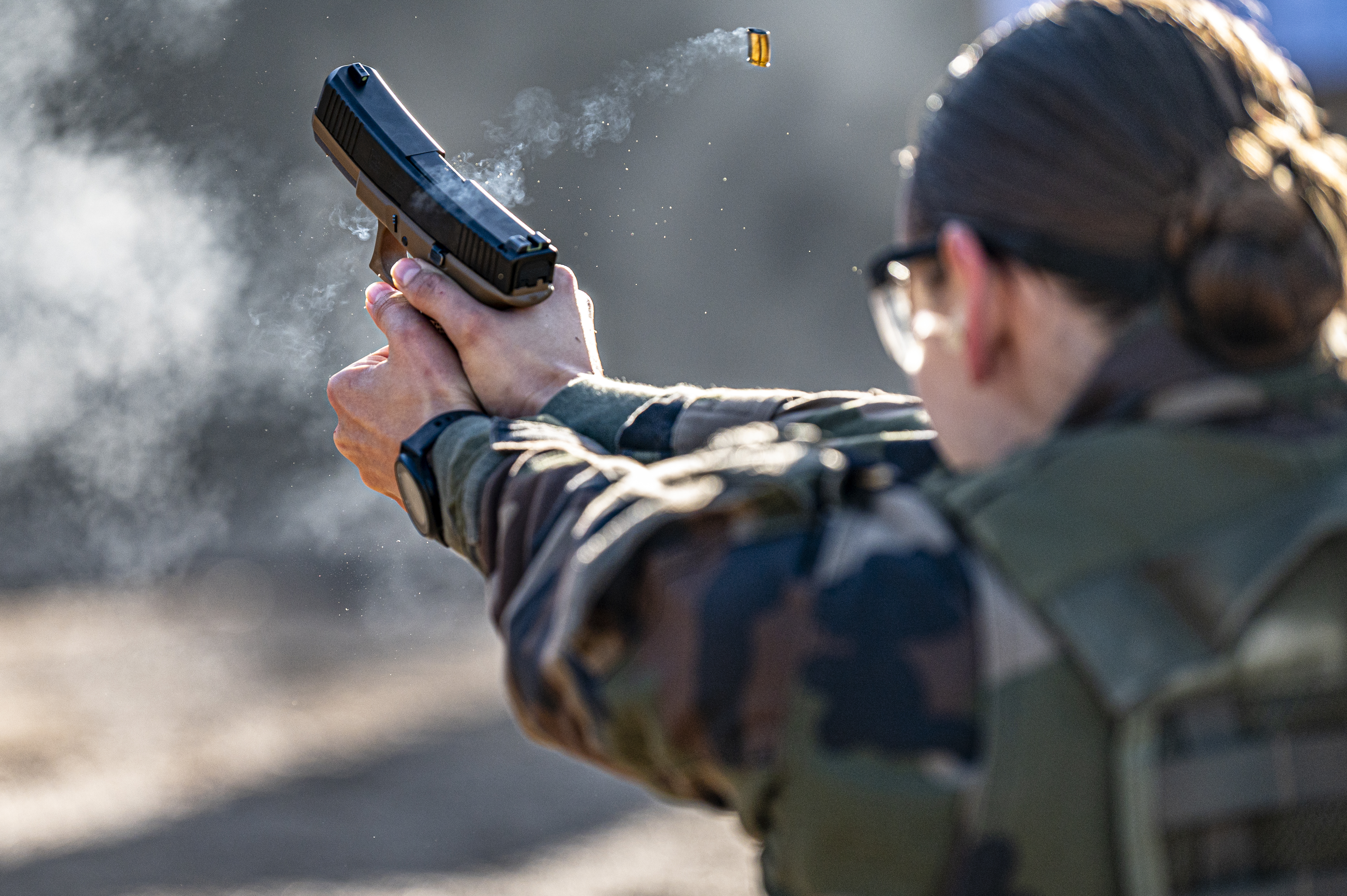 Explication : Les OSC 24C ont eu l'opportunité de tirer avec leurs nouvelles armes, le HK416 et le GLOCK 17, lors de séances de tir adaptées sur le terrain. Cette expérience fait partie intégrante de leur formation, leur permettant d’acquérir les compétences nécessaires pour devenir des combattants qualifiés.