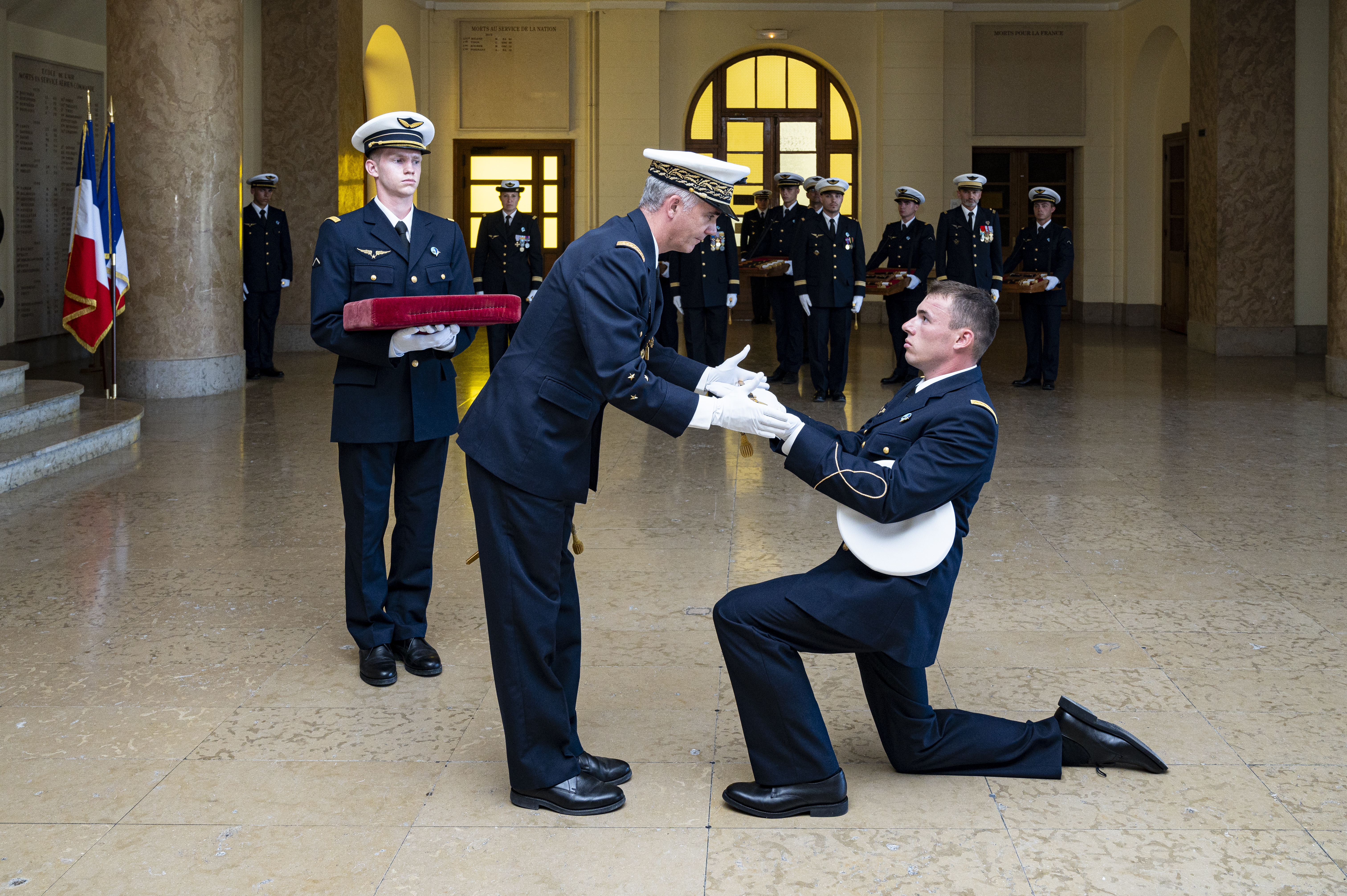 Explication : Cérémonie de remise des poignards pour la promotion OSC 24B, accompagnée d’un officier commissionné.