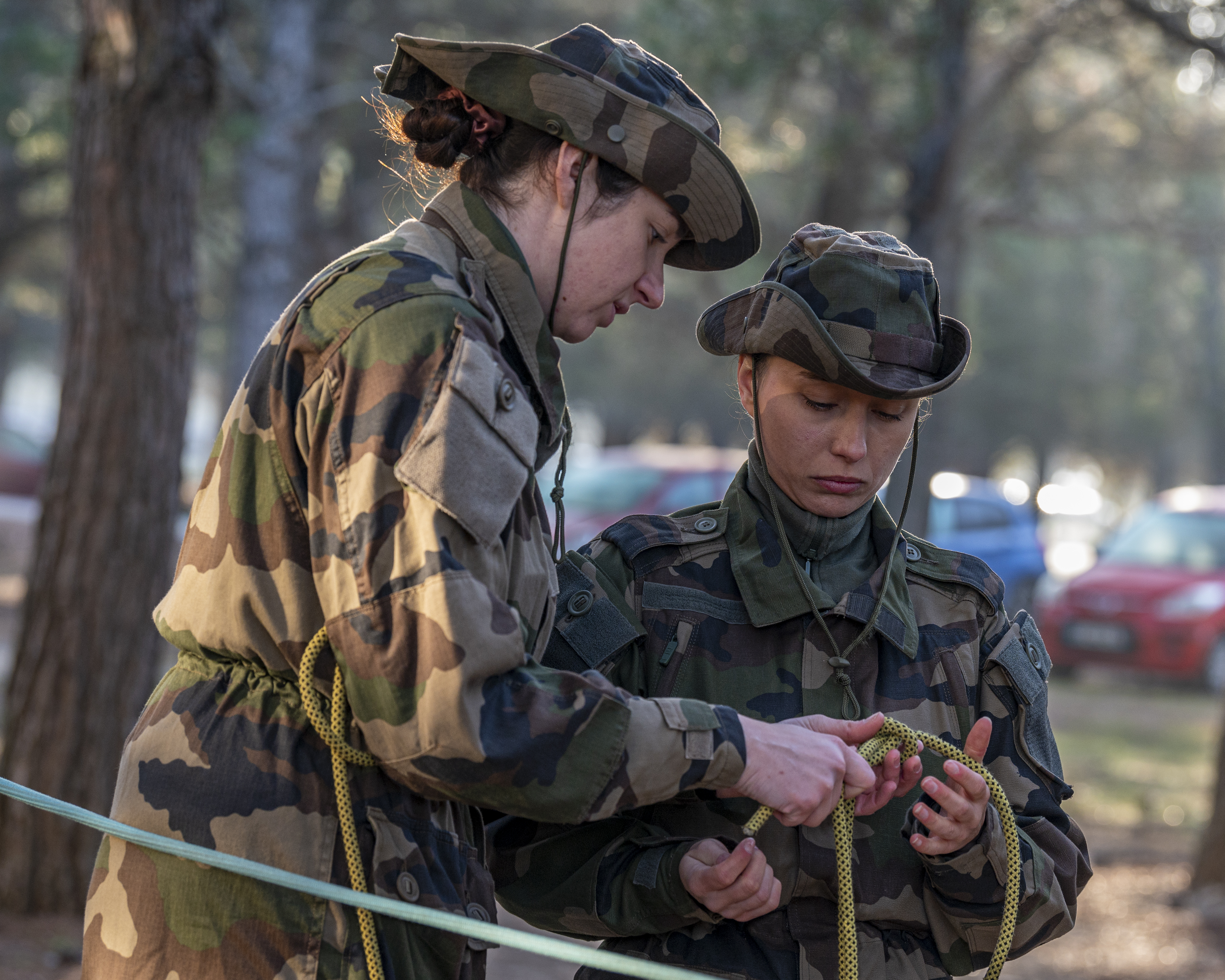 Explication : La maîtrise des nœuds est indispensable pour tout militaire afin de pouvoir évoluer sur le terrain et en mission. Les élèves-officiers, encadrés par la Section d’instruction militaire, les découvrent lors de leur formation militaire initiale.