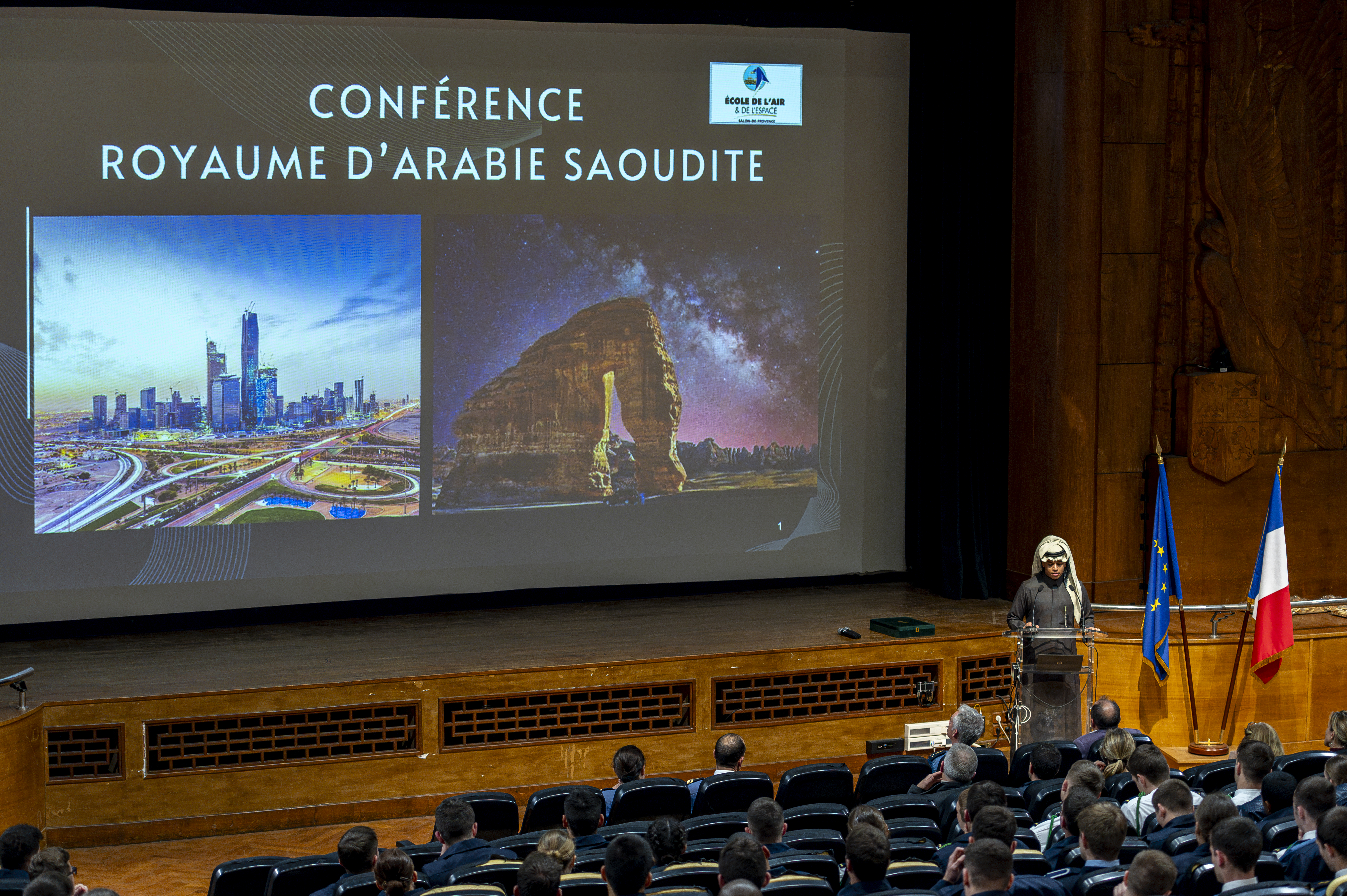 Explication : Lors de la traditionnelle soirée culturelle, les élèves internationaux du CSEA et les élèves saoudiens ont partagé leurs cultures à travers deux conférences, valorisant l’échange et l’ouverture interculturelle.