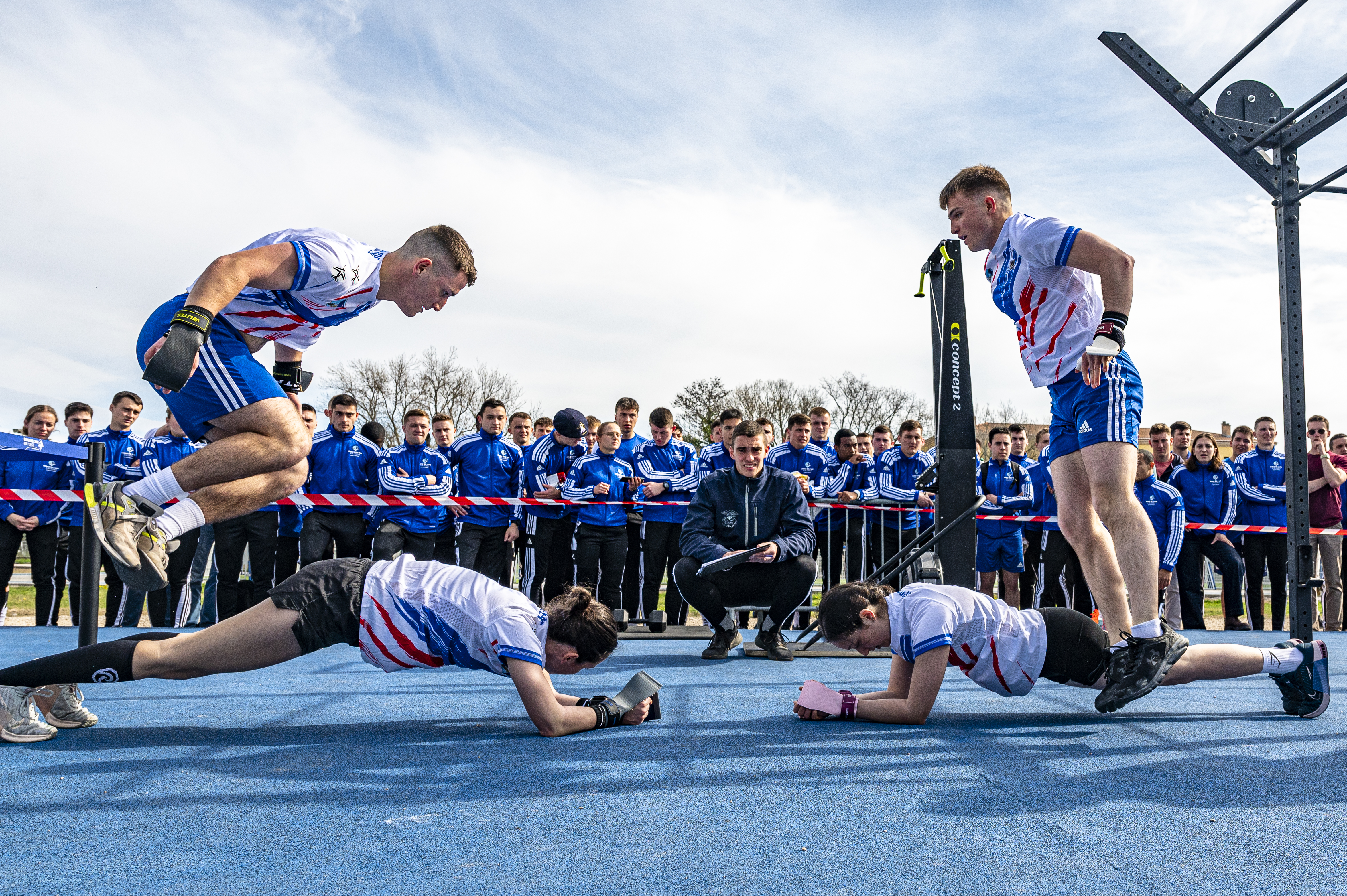 Explication : Chaque année, nos élèves-officiers affrontent leurs homologues de la Royal Air Force de Cranwell lors d'une rencontre sportive.